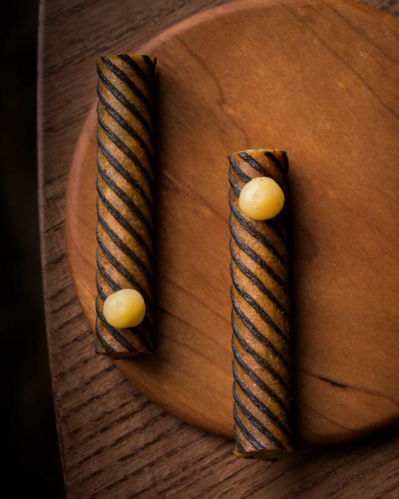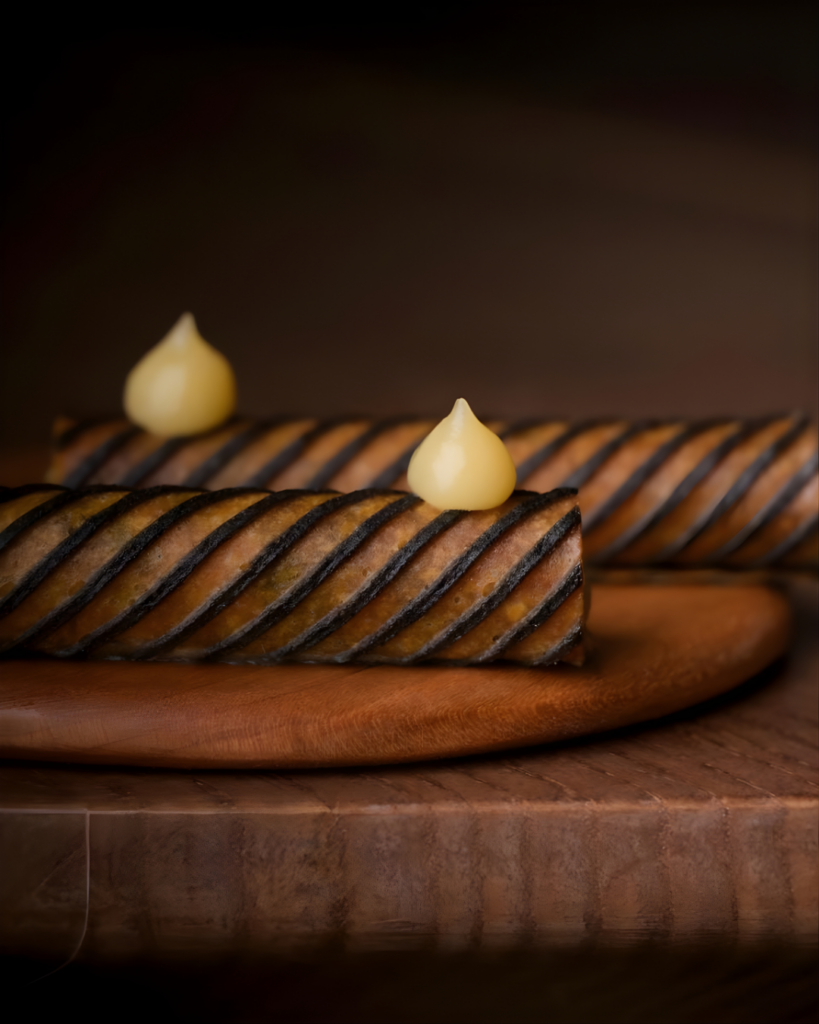 Dieser brandneue Linienzylinder ist der neueste Fang für Ihr Restaurant. Füllen Sie zunächst die diagonalen Linien in die Form und schaben Sie dann den Überschuss mit dem mitgelieferten Schaber ab. Backen Sie diese diagonalen Linien kurz zum Aushärten, etwa 2 Minuten. Füllen Sie dann den Rest der Form mit Ihrem andersfarbigen Brötchenteig, so dass Sie ohne Schneiden einen perfekten Zylinder rollen können. Es ist eine unglaublich einfache und beeindruckende Art und Weise, einen atemberaubenden Willkommens-Happen für Ihre Gäste zu kreieren!