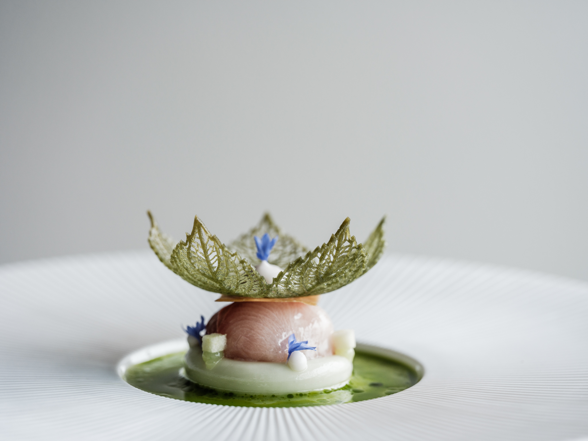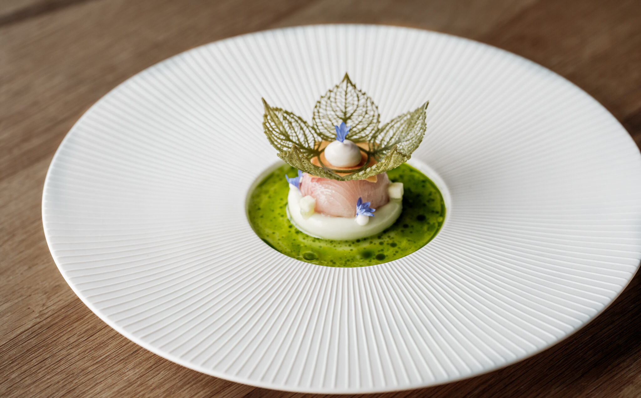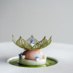 Inspired by fragile yet resilient structures in nature, this tuille balances fine, delicate lines with surprising strength. Shape it after baking for movement and flow. A striking piece of edible wilderness: the Crown Jewel for your autumn menu.