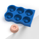 A high-quality silicone mold containing shapes of large savarin rings. The mold features six shapes and is made from 100% food-grade silicone. This mold is capable of withstanding temperatures ranging from -40°C to +200°C, making it suitable for use in both (shock) freezers and ovens.