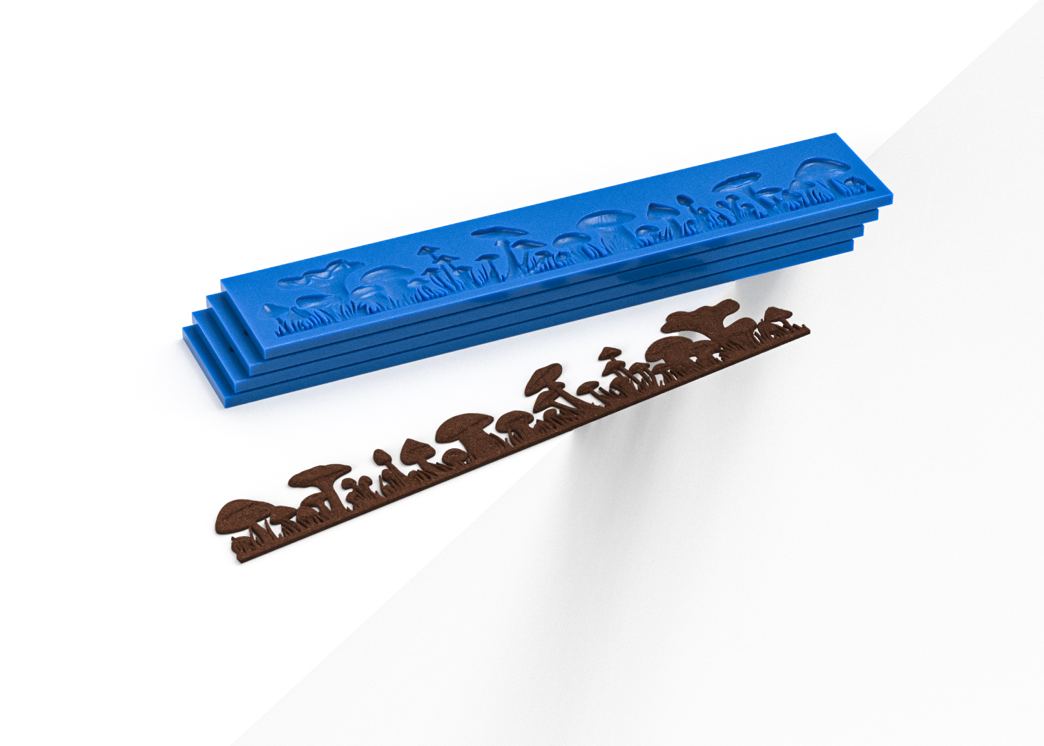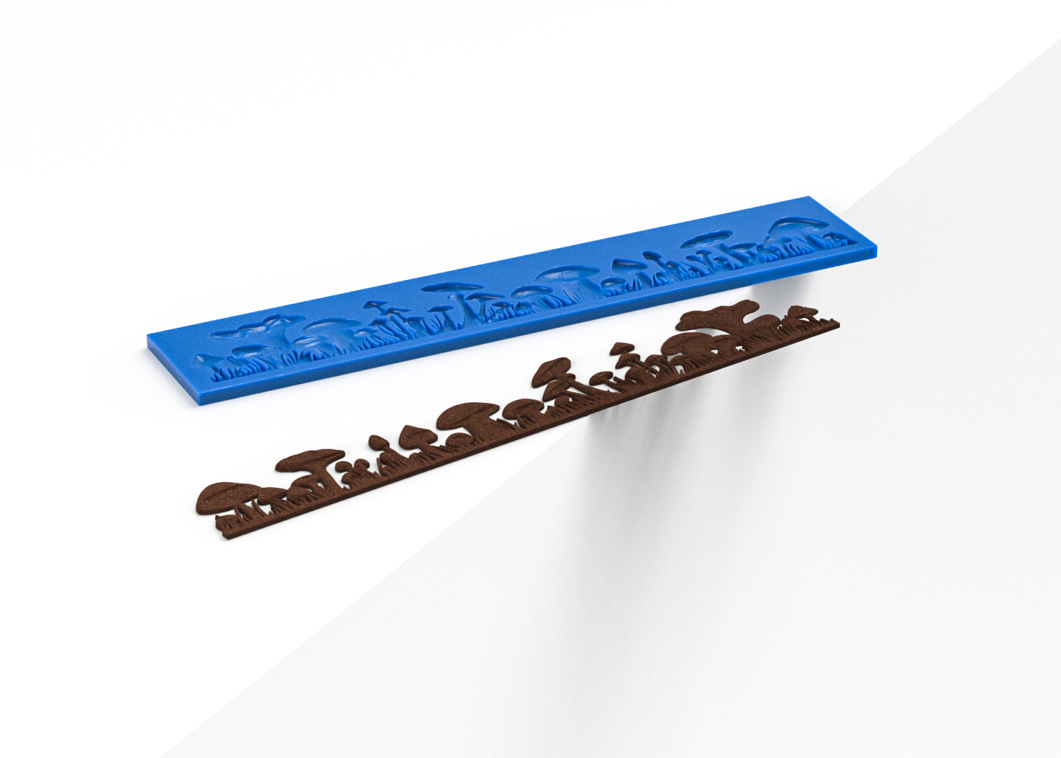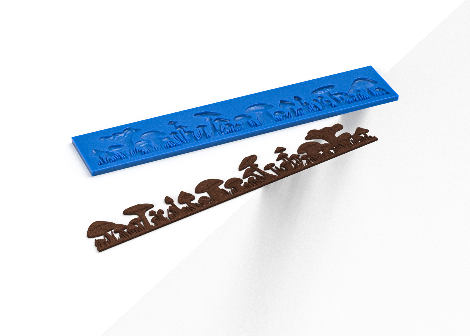 A high-quality silicone mold shaped like mushroom field, to make a realistic fairy ring. The mold features a single shape and is made from 100% food-grade silicone.