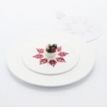 Questo stencil Foliage è realizzato in polistirene di 1 mm di spessore ed è perfetto per rifinire i piatti con un tocco pulito e geometrico. Il design deciso conferisce un aspetto curato e moderno a polveri, tuilles o salse. Non lavabile in lavastoviglie: sciacquare con acqua tiepida (40°C) ed evitare l'uso di detergenti.