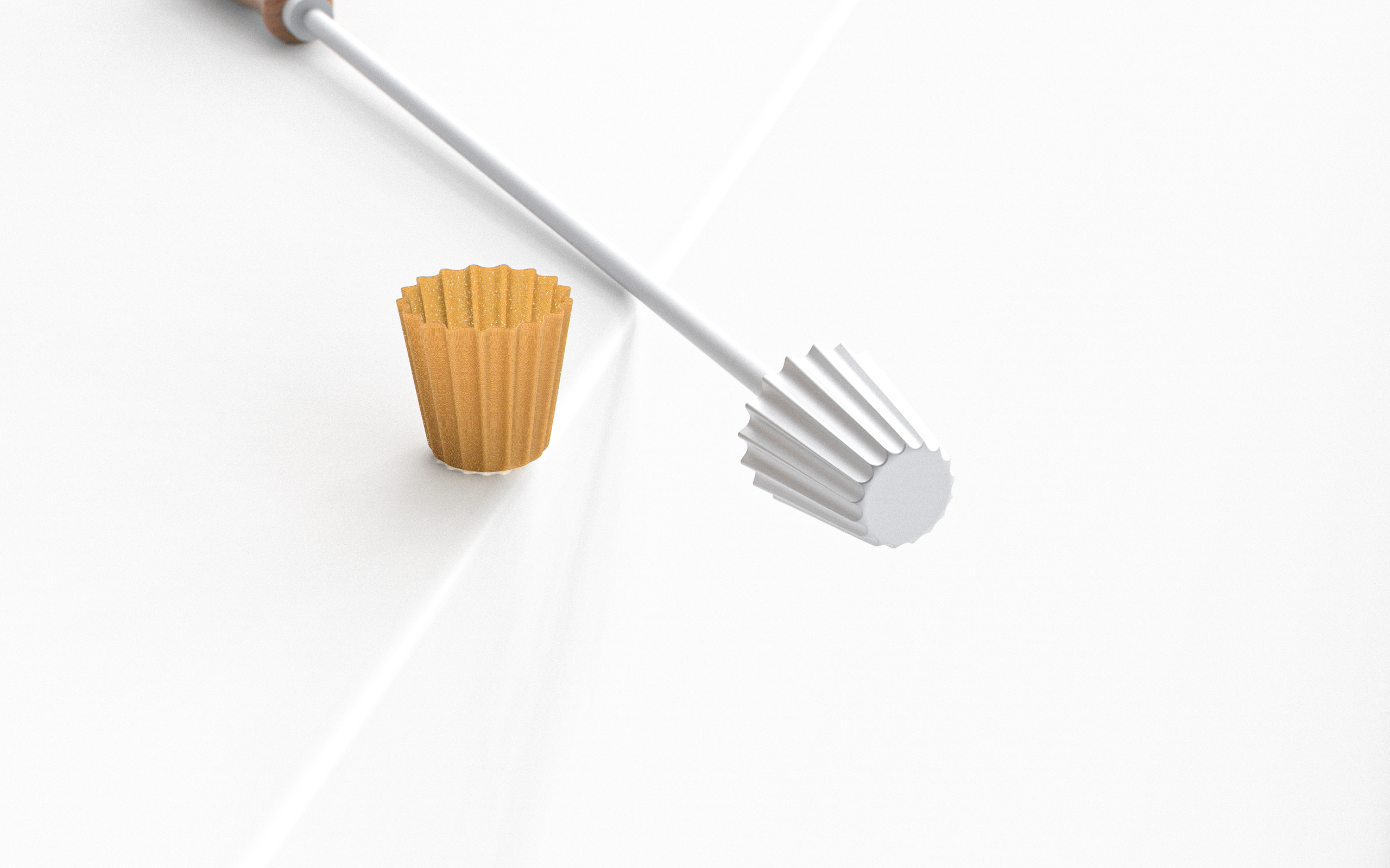 A food-safe Pie Tee stamp with the classic tooth in a compact shape, made in the Netherlands. Part of the Originals family, designed with a smaller diameter that tapers conically from 2.0 to 3.2 cm. The conical design ensures easy release and consistent Pie Tee’s with minimal handling. Ideal for clean one-bite applications with a light, crispy result.