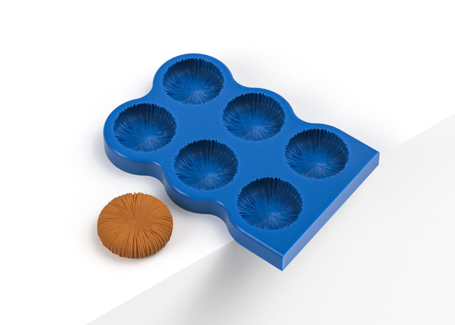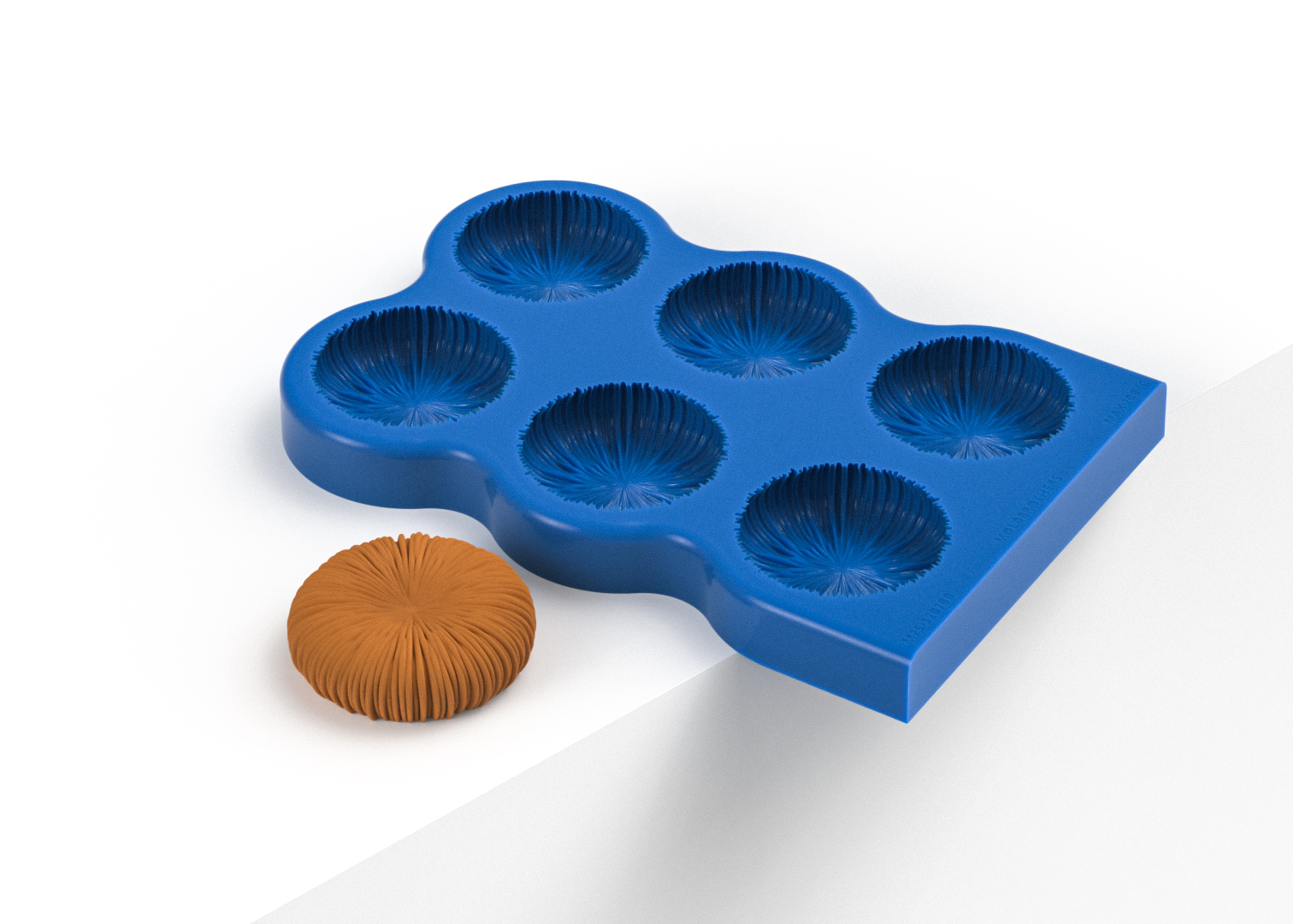 A high-quality silicone mold shaped like with an abstract bottom view of a mushroom. The mold features six shapes and is made from 100% food-grade silicone.