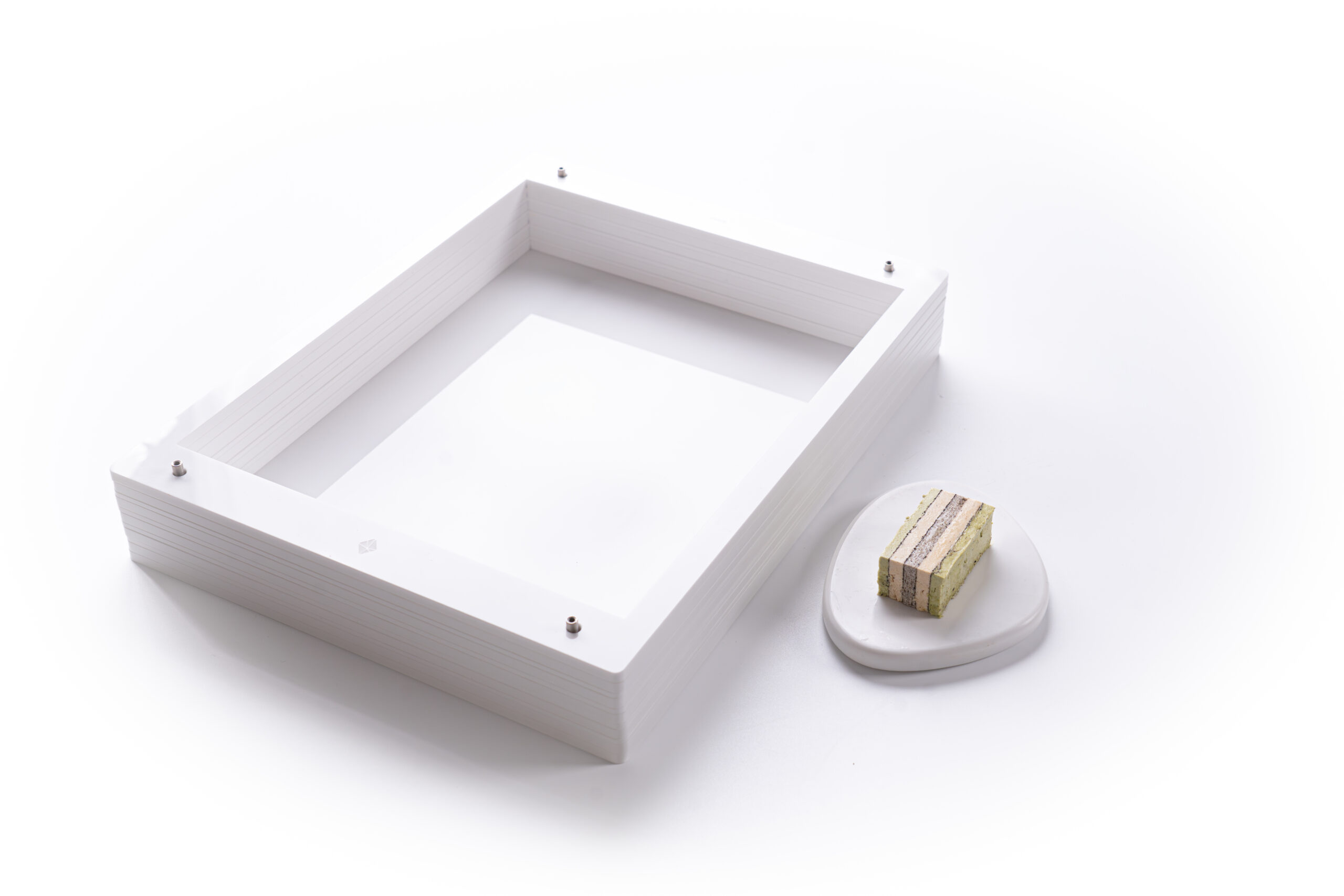 A solid, high-quality frame kit made for layered creations like butter, ganache, marbré, pâte de fruit and more. You start with the base, then add one or more frames to build neat, even layers. It’s easy to use and looks great, making it perfect for anyone who wants their work to taste and look top-notch.