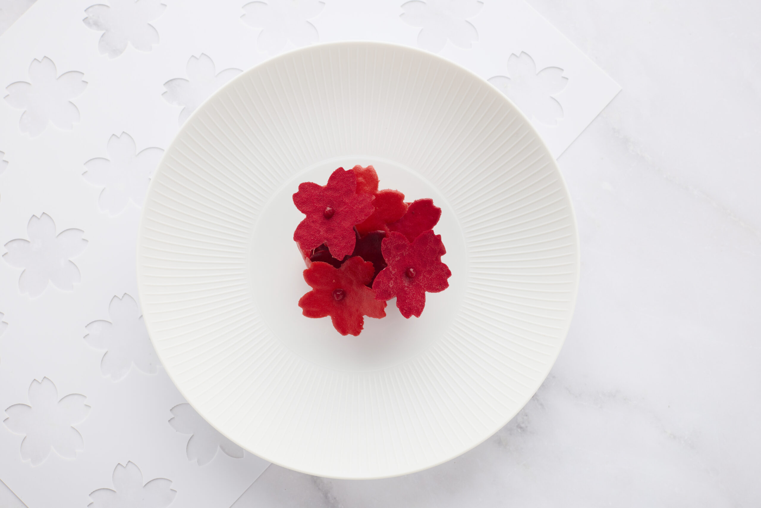 厚さ1mmのアクリルから作られたサクラ型ステンシルは、繊細なチュイールやイソマルトの花びら、軽いメレンゲのディテールを作るのに最適。 違う 食器洗い機使用可-ぬるま湯(40℃)ですすぎ、洗浄剤の使用は避ける。