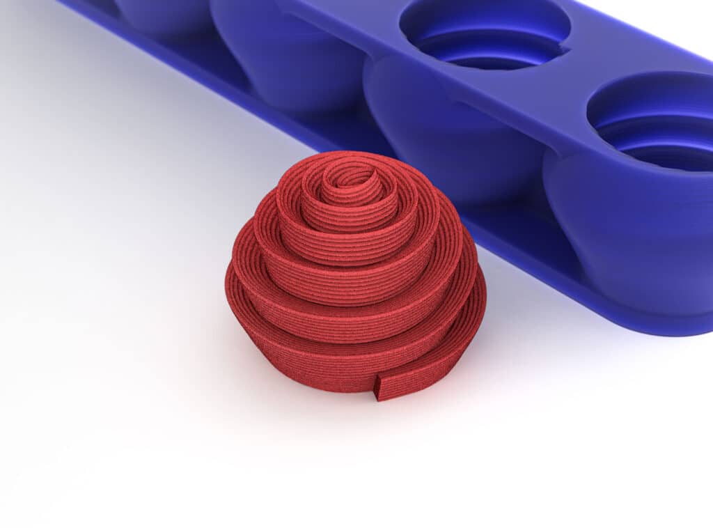 リブパイピングスパイラル型の高品質シリコンモールド。このモールドは5つのキャビティがあり、脱型が簡単で、100%食品グレードのシリコーンで作られています。.