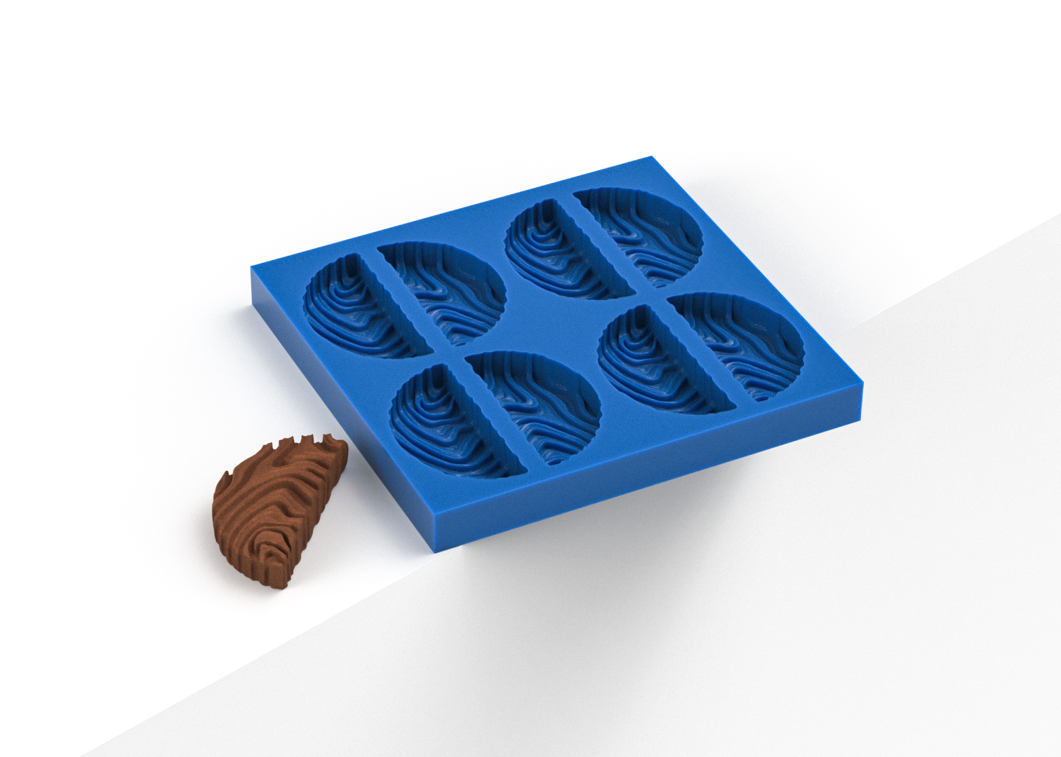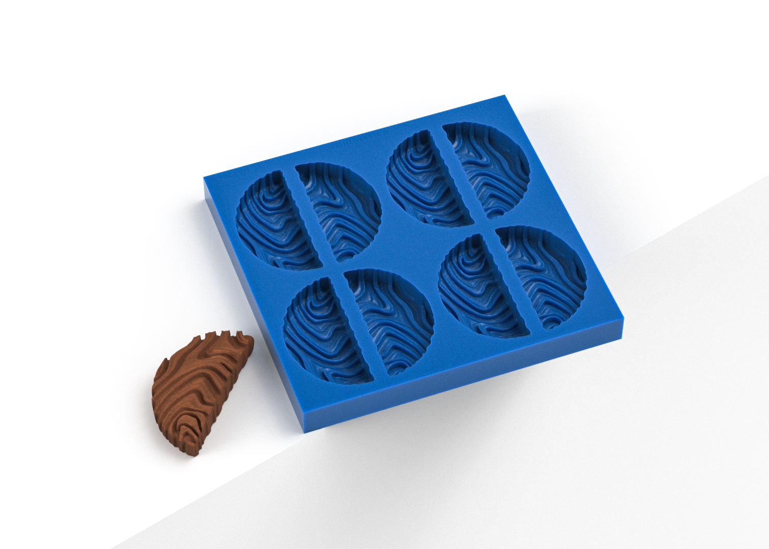 A high-quality silicone mold shaped like abstract wood texture half disc. The mold features eight shapes and is made from 100% food-grade silicone.