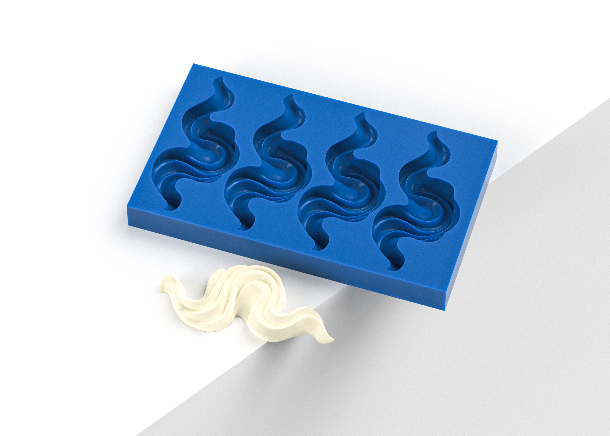 A high-quality silicone mold containing shapes inspired by the Aurora. The mold features four shapes and is made from 100% food-grade silicone. This mold is capable of withstanding temperatures ranging from -40°C to +200°C, making it suitable for use in both (shock) freezers and ovens.