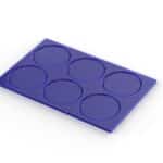A high-quality silicone mold with the shape of a thin, round disc with a small raised edge. The edge makes it suitable for adding liquids. The mold features six platforms and is made from 100% food-grade silicone.