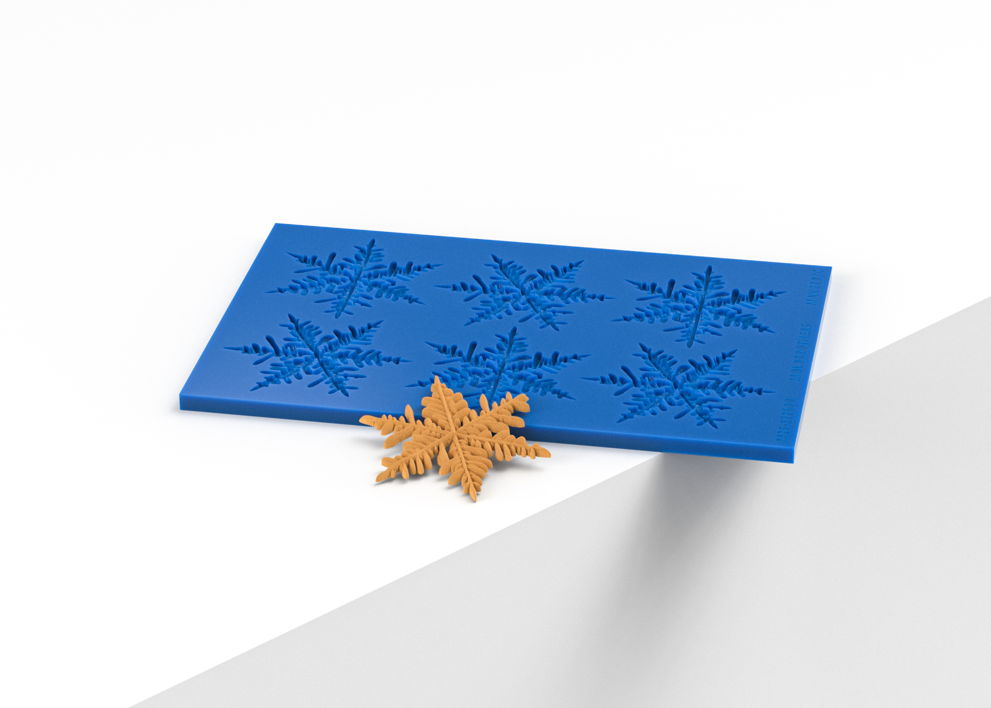 A high-quality silicone mold containing shapes of realistic snowflakes. The mold features six shapes and is made from 100% food-grade silicone. This mold is capable of withstanding temperatures ranging from -40°C to +200°C, making it suitable for use in both (shock) freezers and ovens.
