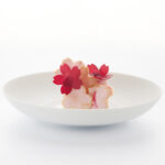 Sakura-shaped stencil made from 1 mm thick polystyrene, perfect for creating delicate tuilles, isomalt petals or light meringue details—adds a floral touch to both sweet and savoury plates. Not dishwasher safe—rinse with lukewarm water (40°C) and avoid using cleaning agents.
