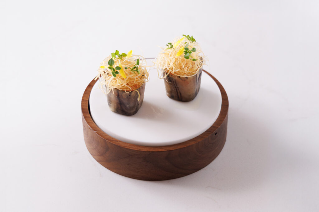 A compact, square Pie Tee designed for single bites. Square shapes are rare in this category, but this one proves they work. The clean geometry is softened by rounded corners, giving the shape more volume and allowing it to carry a proper filling while keeping a balanced look on the plate.
