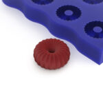 A high-quality silicone mold in the shape of a small twisted donut, containing 8 shapes and made from 100% food-grade silicone. It is perfect for small mousses, pâte de fruit, and other sub-elements in your dish or single bite.